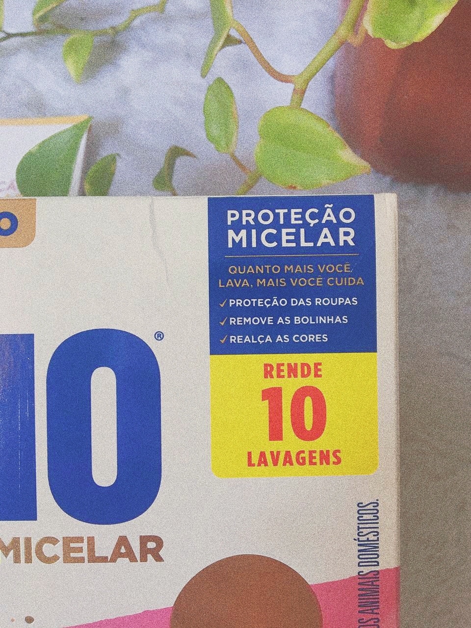 A nova linha Proteção Micelar conta com 2 versões ; Sabão em Pó e Sabão Liquido. A versão que recebi foi somente em Pó ( e até prefiro ) com 800g, que promete render até 10 lavagens.