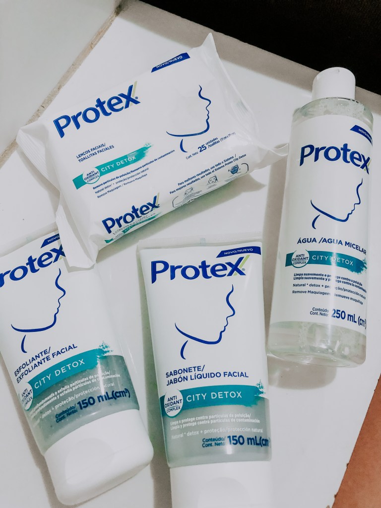 E a outra campanha foi um kit de skin care contra a poluição da Protex.