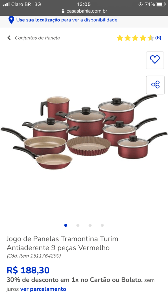 Jogo de Panelas Tramontina Antiaderente – 9 peças (clique aqui) ** até o momento desse post as panelas voltaram ao valor normal, mas é bom sempre conferir.