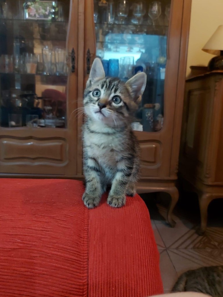 Fui buscá-la um dia depois, de tão ansiosa que eu estava, exatamente no dia 1 de Outubro. É a primeira vez que tenho um gatinho, e eu tô amando tanto ela, ela é incrível, já cresceu tanto, adoro admirar as novas fases dela e tudo que ela aprende.