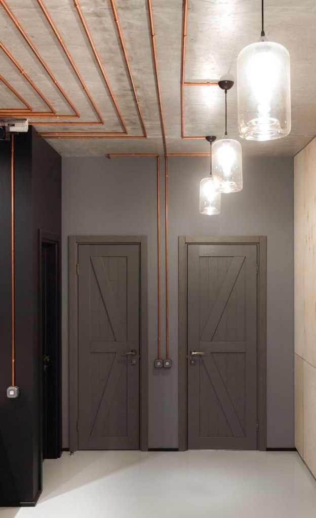 Os móveis industriais são bem funcionais e carregam uma característica despojada, podem ser facilmente identificados por carregarem a cor preto, geralmente nos metais, e combinados com madeira rústica. É possível identificar um estilo industrial ao notar vigas aparentes, fios expostos, superfícies sem acabamento, ambientes integrados, janelas amplas, etc.