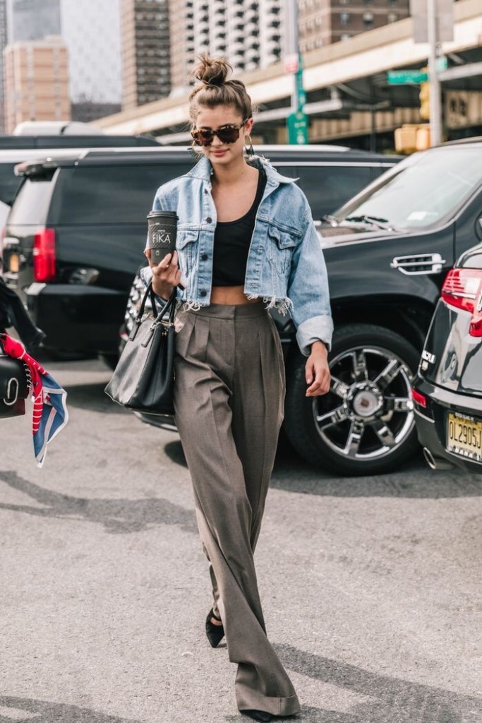 Um combo que sempre funciona é combinar o top com peças de alfaiataria, dessa forma a sua produção vai ficar estilosa, sexy e com muita atitude (não se esqueça de escolher peças com tecidos mais leves).A mistura de estilos, como o sexy + clássico, te ajuda a equilibrar a combinação, dessa forma o outfit ficará harmônico e estiloso, basta usar as peças certas.